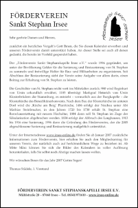 Förderverein - Geschichte - Kalender 2007 - Dokumente - Sterbebilder - Kontakt